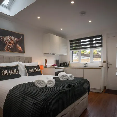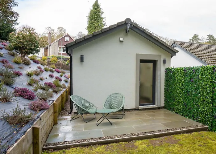 Heather Nook- Luxury Studio In Pitlochry距离皮特洛赫里高尔夫俱乐部0.8公里,设有1间花园景的卧室. 此别墅内的设施都经过精心的安排,包括咖啡/茶设施,休息区 和电视和厨房.